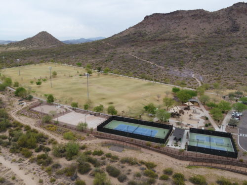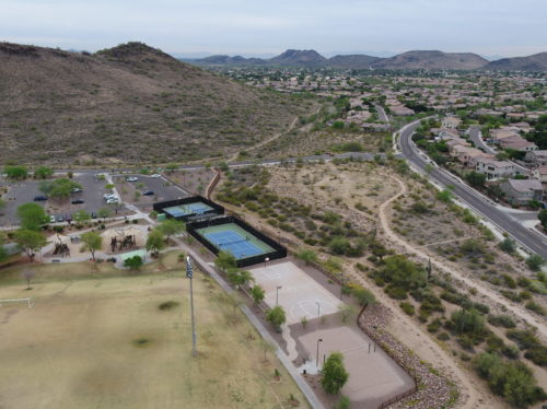 DESCRIPTION: Deem Hills is a highly utilized City of Phoenix park with mountain trails, a playground, soccer fields, and basketball courts. The project featured expansion to the parking lot and picnic ramada facilities and amenities, 3-miles of interpretive hiking trails, a footbridge crossing, and extension of the current storm drain infrastructure off of the mountain. Scope of work also included competition-ready sand volleyball, tennis, and pickleball courts. The park also received many new full size native trees, plantings, and associated irrigation system extensions to enhance the existing landscape, and provide shade at resting points along the trails.