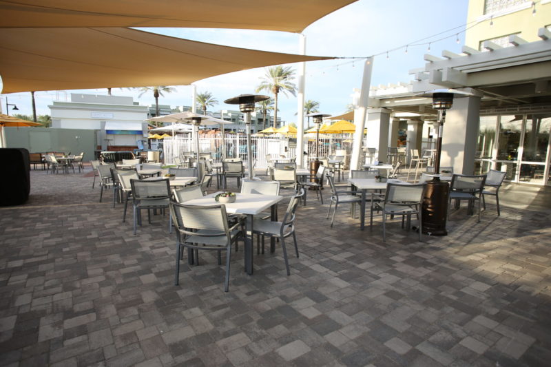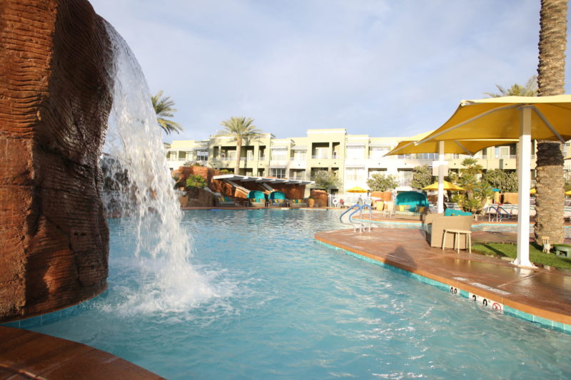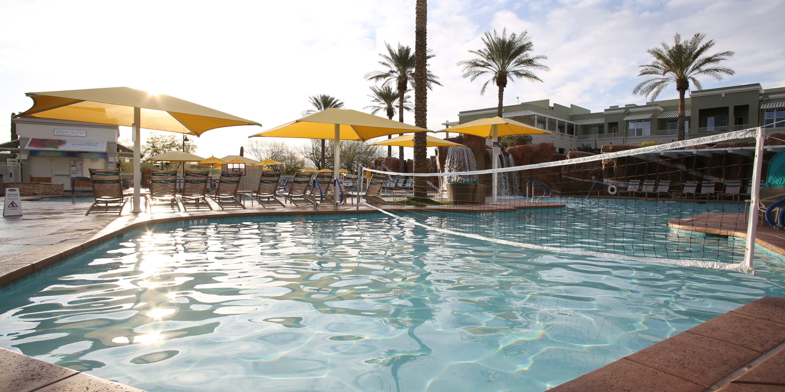 DESCRIPTION: Brycon performed the renovation of Marriott Canyon Villa’s pool area including the resurfacing of the main pool, lap pool and spas. Scope consisted of the demolition of existing flagstone and concrete, palm trees, and fencing around the pool hut. Ornamental upgrades included new wrought iron fencing, refinished pool hut walls, resurfaced decking, and the painting and patching of existing decorative rock features.